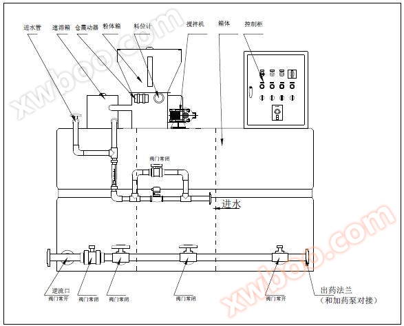 | 3, dry powder soluble device | 12, Control box (Local control and remote control interface) |